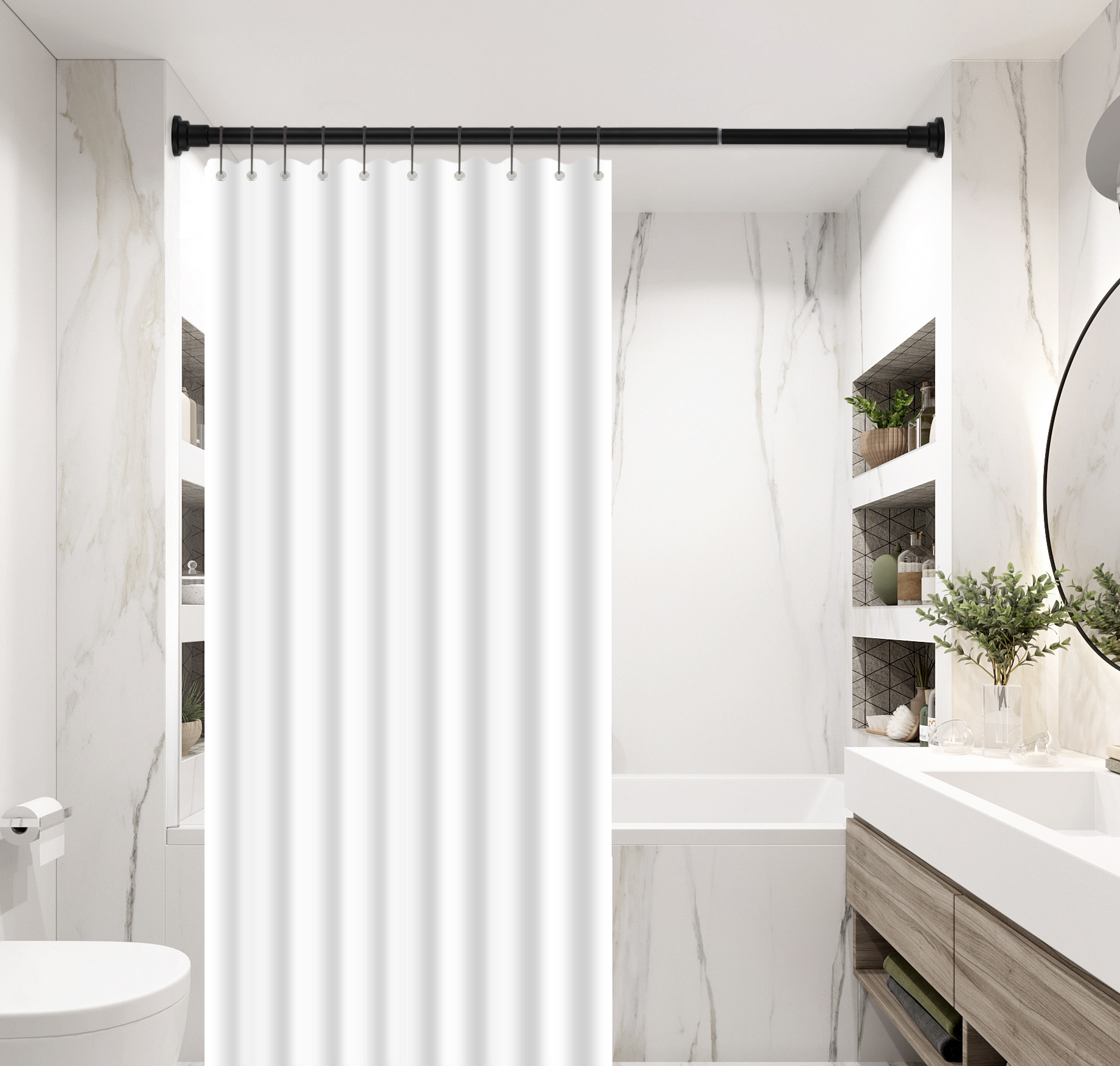 Matte Black Shower Curtain Rod : Free shipping on orders over $99!. Select from a wide variety of matte black shower rods. Easy 90 day returns · 90 day returns · 60,000+ products in stock *matte black finish is the perfect complement to modern spaces *fits standard 72 x 72 shower curtains *shower rod adjusts from 5' to 6' for a more flexible installation *features decorative covers that provide a stylish element while also helping to conceal the mounting hardware *shower rod pivoting flanges make installation easier and more secure on inconsistent or uneven walls *limited lifetime warranty *dimensions: Aluminum adjustable tension shower rod in matte black. Signaturehardware.com has been visited by 10k+ users in the past month